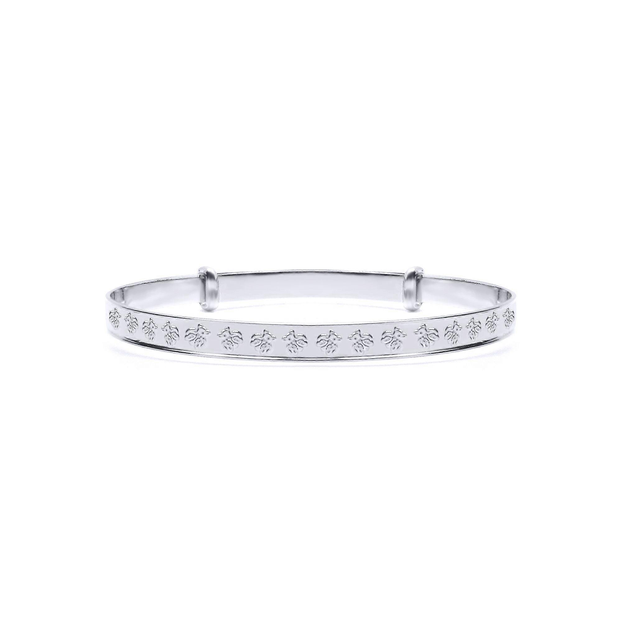 Jewelco London Solid 925 Sterling Silver Nursery Teddy Bear Pattern 3mm Expanding Baby Bangle Bracelet