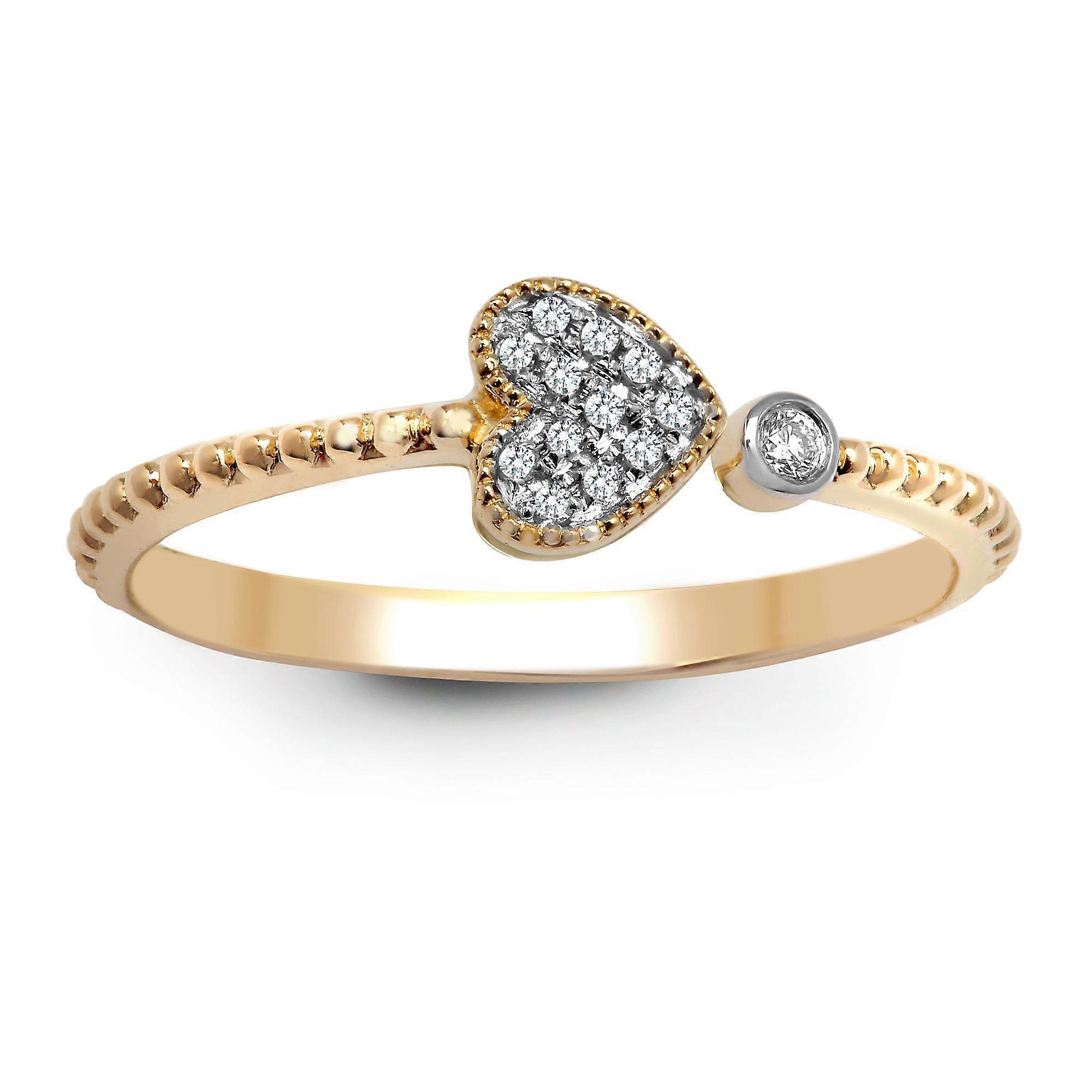 Jewelco London Solid 9ct Gold Pave Set Round H I1 0.07ct Diamond Beaded Love Heart Arrow Cluster Ring 5.5mm