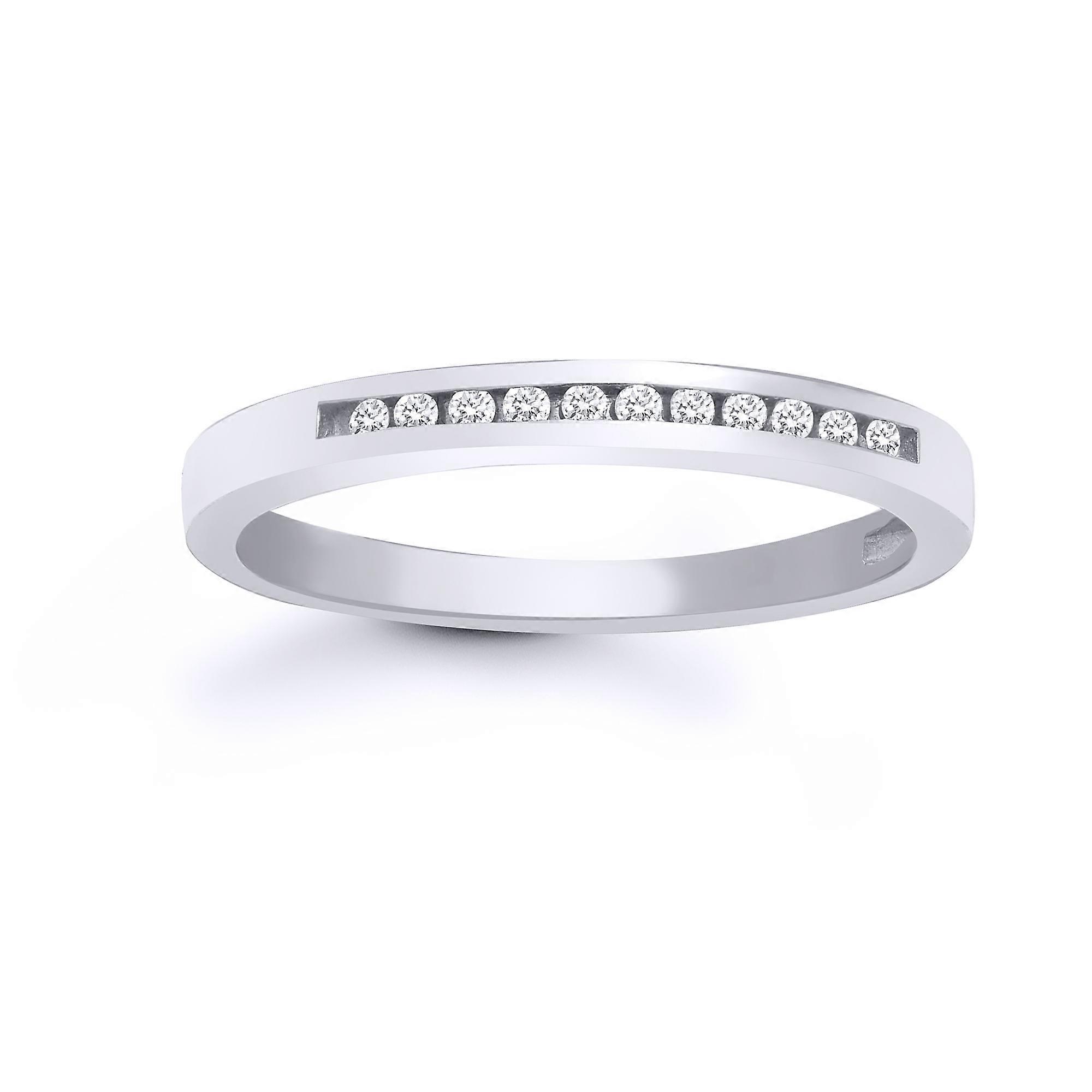 Jewelco London Solid 9ct White Gold Channel Set Round H I1 0.1ct Diamond Dainty Band Eternity Ring 2.5mm