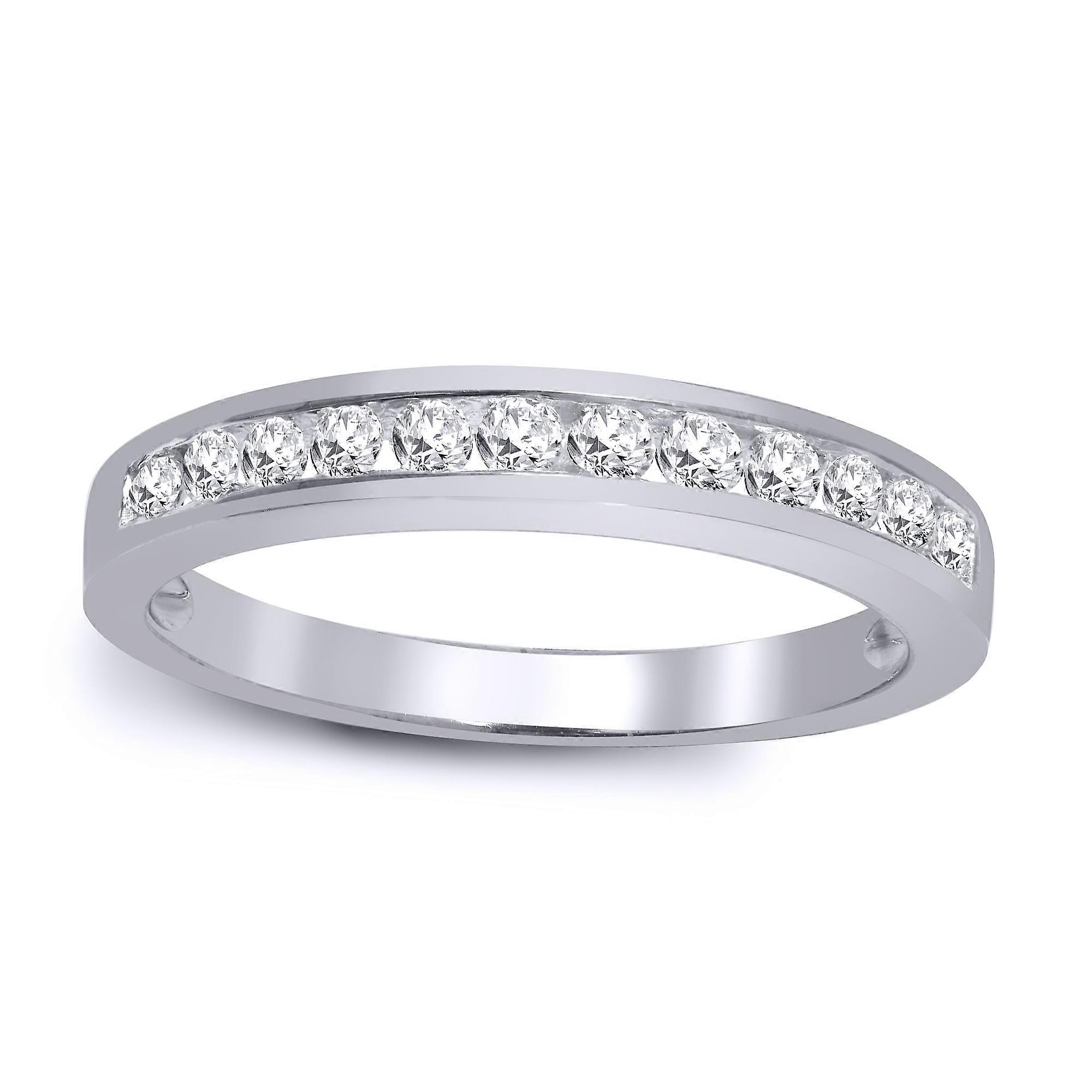 Jewelco London Solid 9ct White Gold Channel Set Round H I1 0.35ct Diamond Dainty Band Eternity Ring 3.5mm