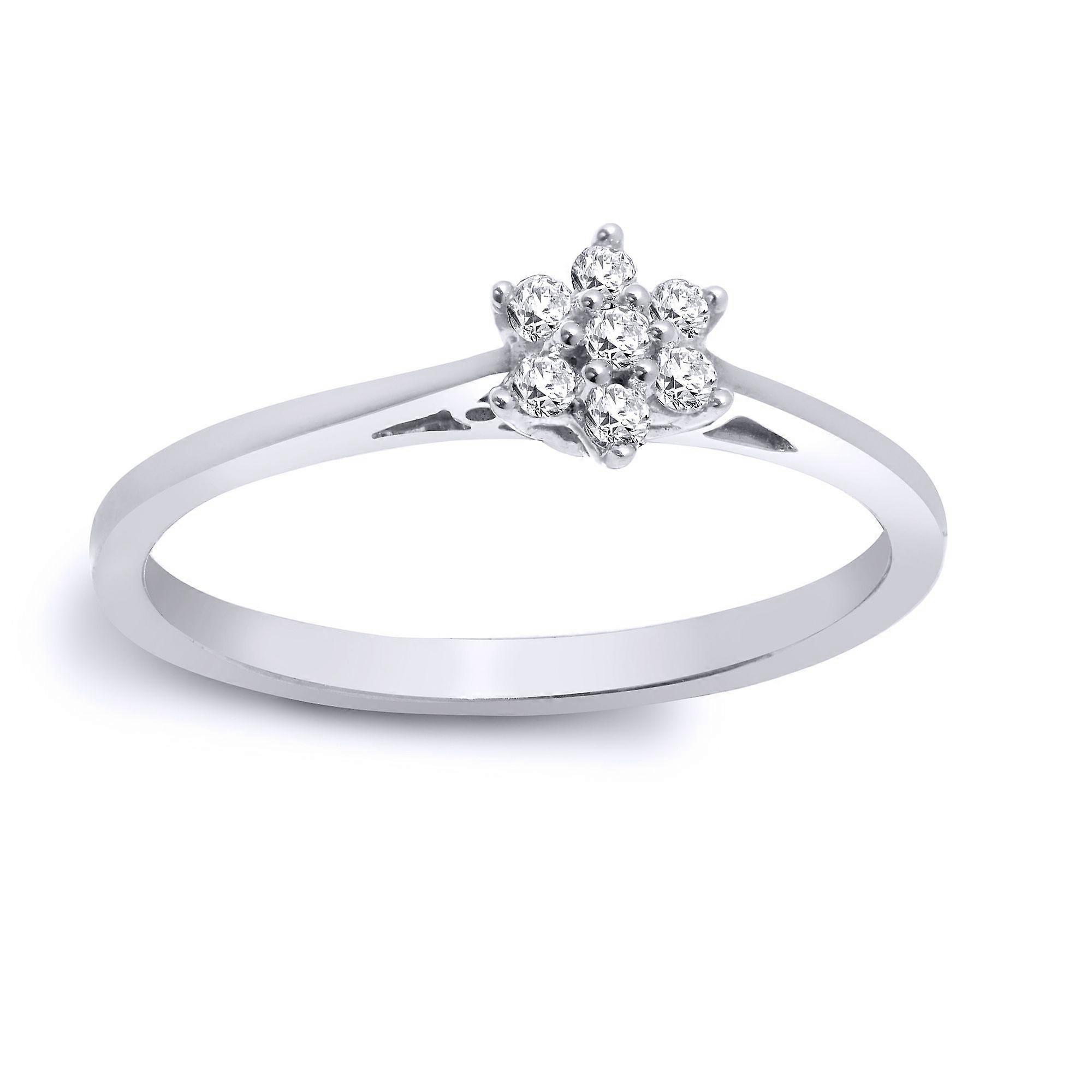 Jewelco London Solid 9ct White Gold Claw Set Round H I1 0.1ct Diamond 7 Stone Daisy Cluster Ring 5mm