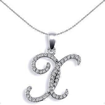 Jewelco London Solid 9ct White Gold Pave Set Round G SI 0.19ct Diamond Calligraphy Script Initial Pendant