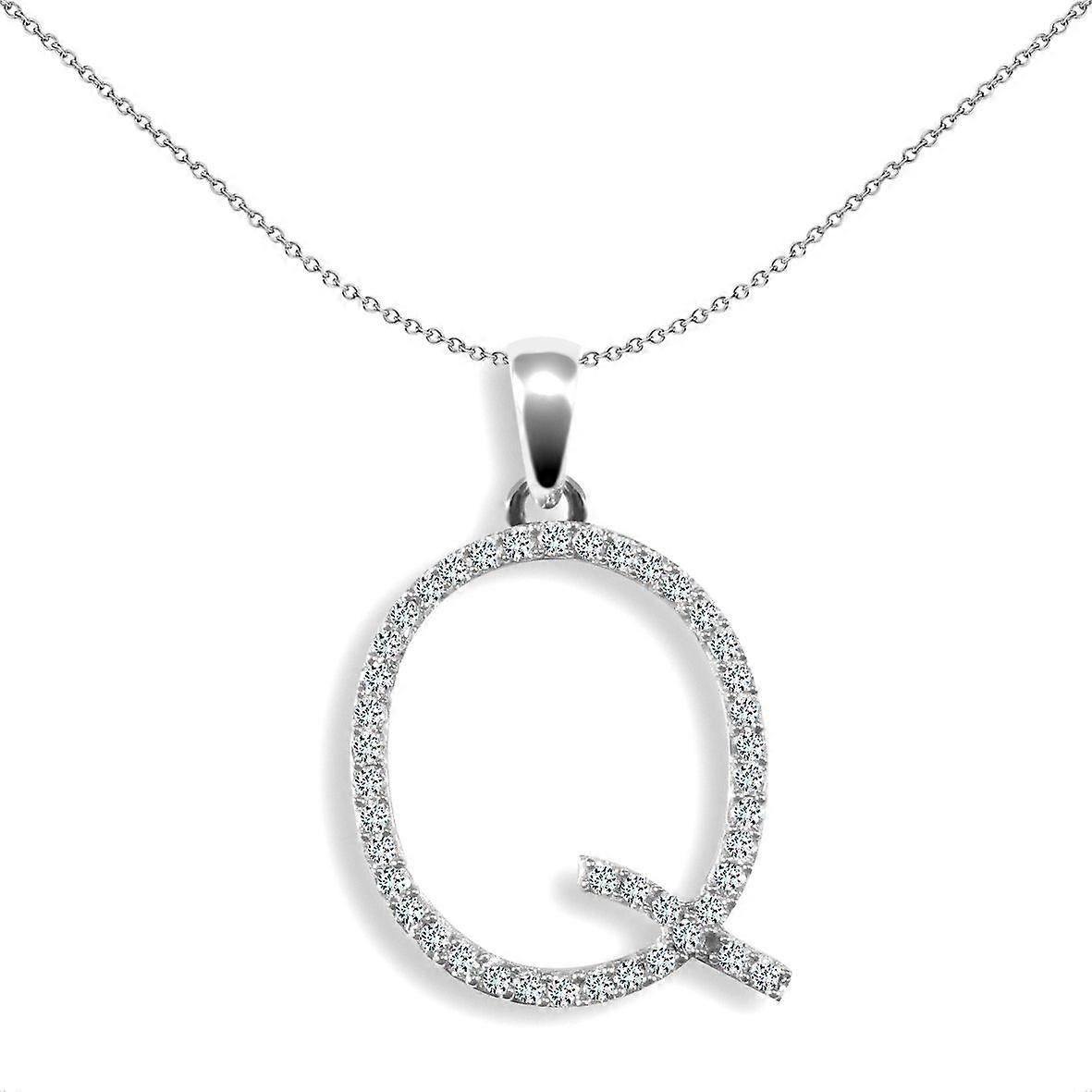 Jewelco London Solid 9ct White Gold Pave Set Round G SI 0.22ct Diamond Identity Dainty Initial ID Charm Pendant Letter Q