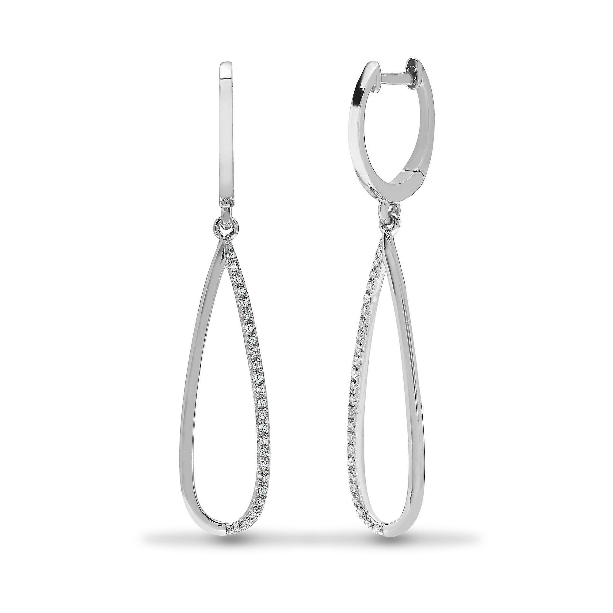 Jewelco London Solid 9ct White Gold Pave Set Round H I1 0.14ct Diamond Raindrop Huggie Drop Earrings