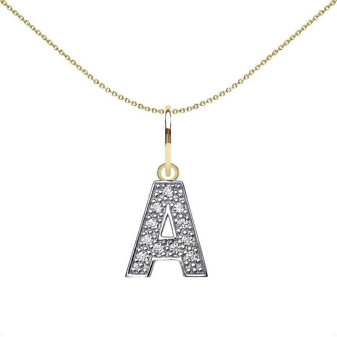 Jewelco London Solid 9ct Yellow and White Gold Cubic Zirconia 10mm San Serif Block Font Initial Charm Pendant, Letter A