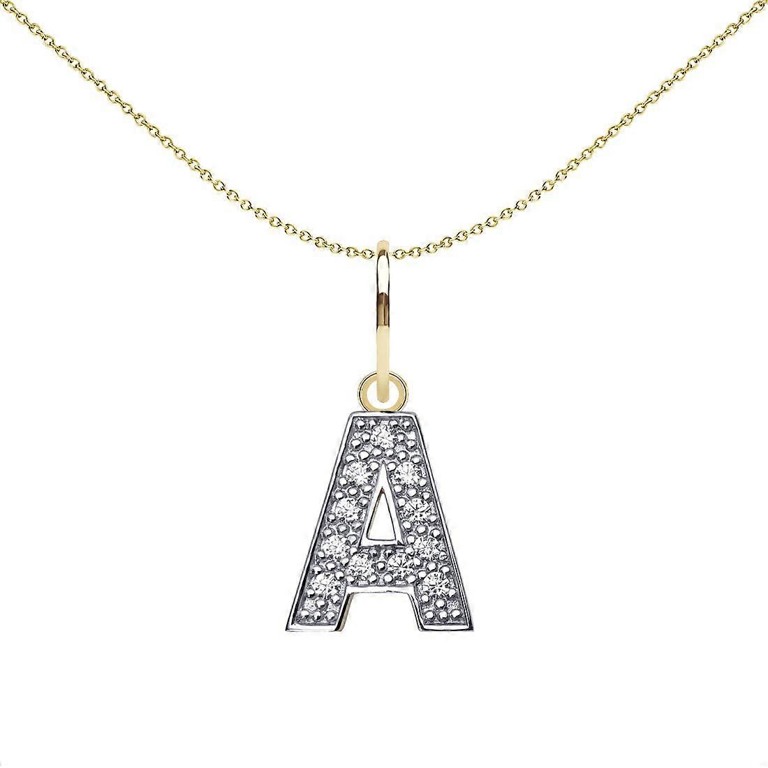 Jewelco London Solid 9ct Yellow and White Gold Cubic Zirconia 10mm San Serif Block Font Initial Charm Pendant, Letter A