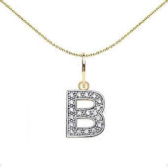 Jewelco London Solid 9ct Yellow and White Gold Cubic Zirconia 10mm San Serif Block Font Initial Charm Pendant, Letter B