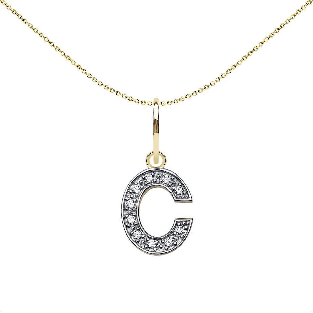 Jewelco London Solid 9ct Yellow and White Gold Cubic Zirconia 10mm San Serif Block Font Initial Charm Pendant, Letter C