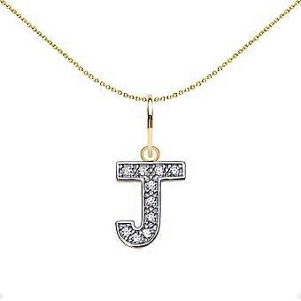 Jewelco London Solid 9ct Yellow and White Gold Cubic Zirconia 10mm San Serif Block Font Initial Charm Pendant, Letter J