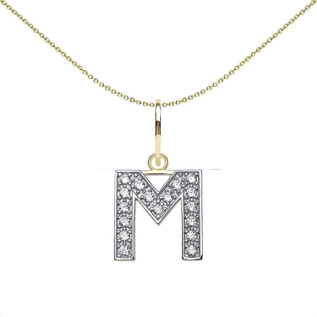 Jewelco London Solid 9ct Yellow and White Gold Cubic Zirconia 10mm San Serif Block Font Initial Charm Pendant, Letter M