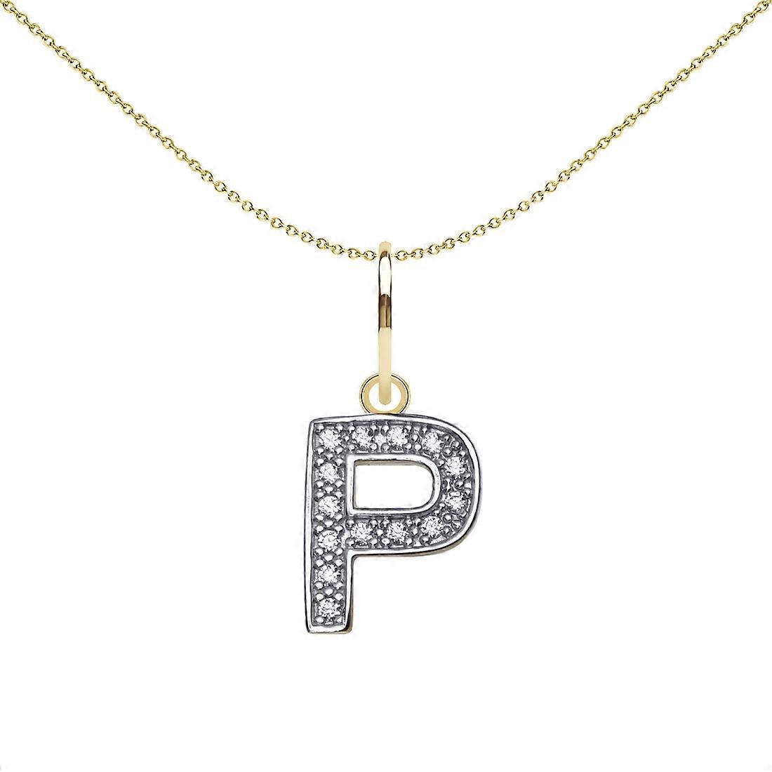 Jewelco London Solid 9ct Yellow and White Gold Cubic Zirconia 10mm San Serif Block Font Initial Charm Pendant, Letter P