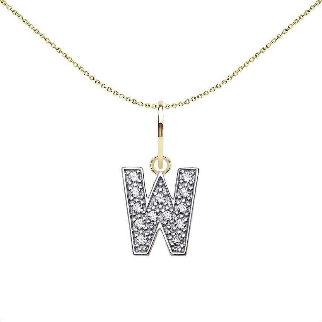Jewelco London Solid 9ct Yellow and White Gold Cubic Zirconia 10mm San Serif Block Font Initial Charm Pendant, Letter W