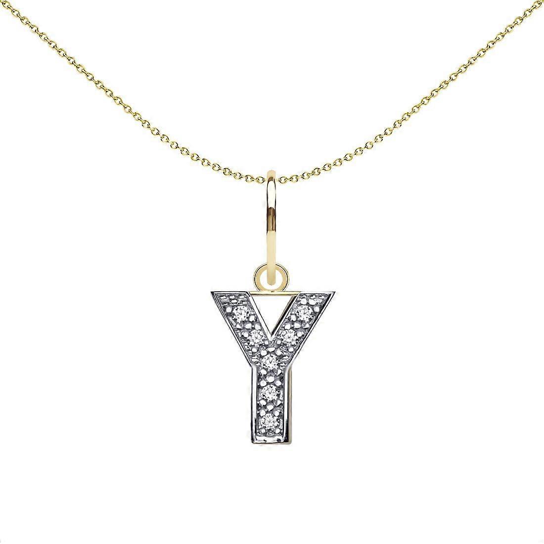 Jewelco London Solid 9ct Yellow and White Gold Cubic Zirconia 10mm San Serif Block Font Initial Charm Pendant, Letter Y