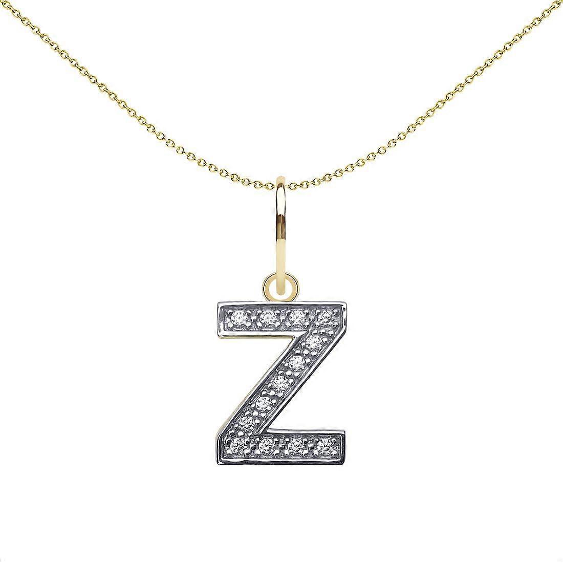 Jewelco London Solid 9ct Yellow and White Gold Cubic Zirconia 10mm San Serif Block Font Initial Charm Pendant, Letter Z