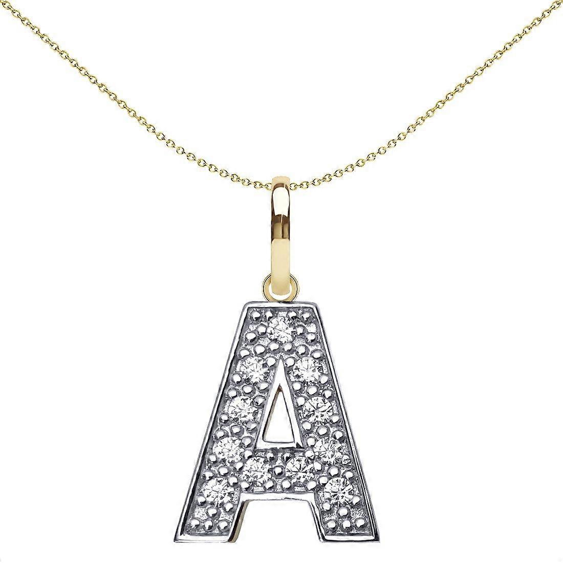 Jewelco London Solid 9ct Yellow and White Gold Cubic Zirconia 15mm San Serif Block Font Initial Charm Pendant, Letter A