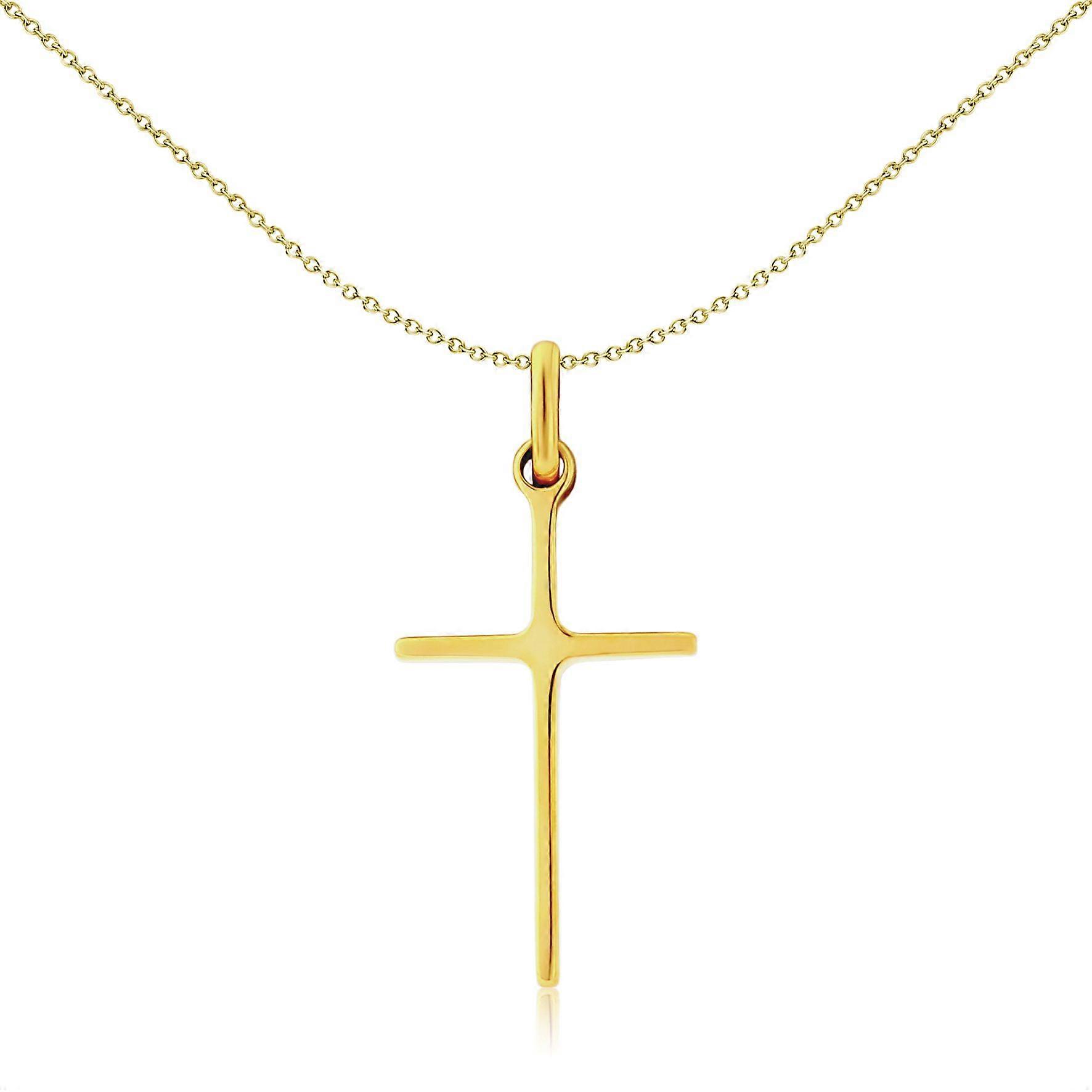 Jewelco London Solid 9ct Yellow Gold 1.2mm Thick Polished Cross Charm Pendant