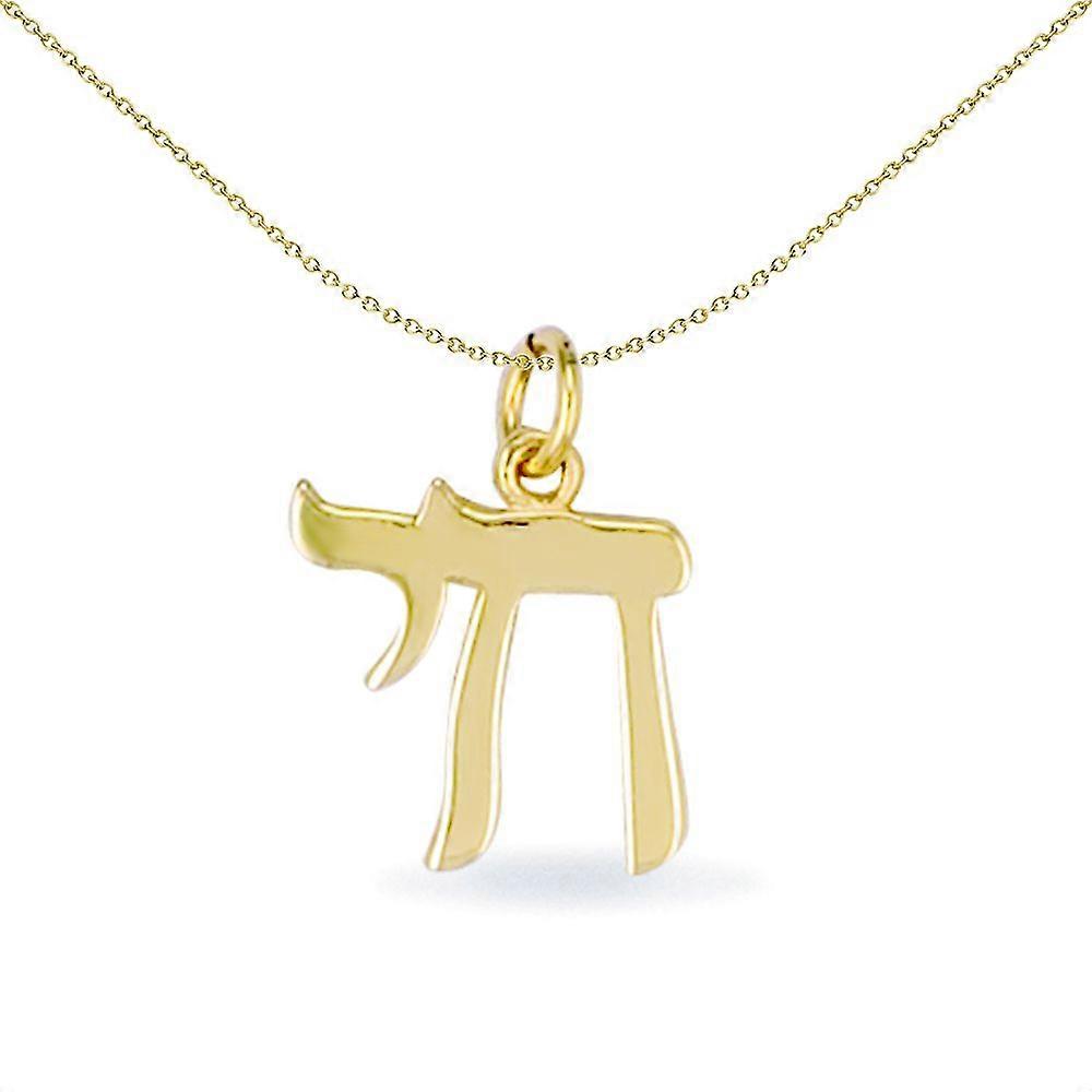 Jewelco London Solid 9ct Yellow Gold Hebrew Chai Life Charm Pendant