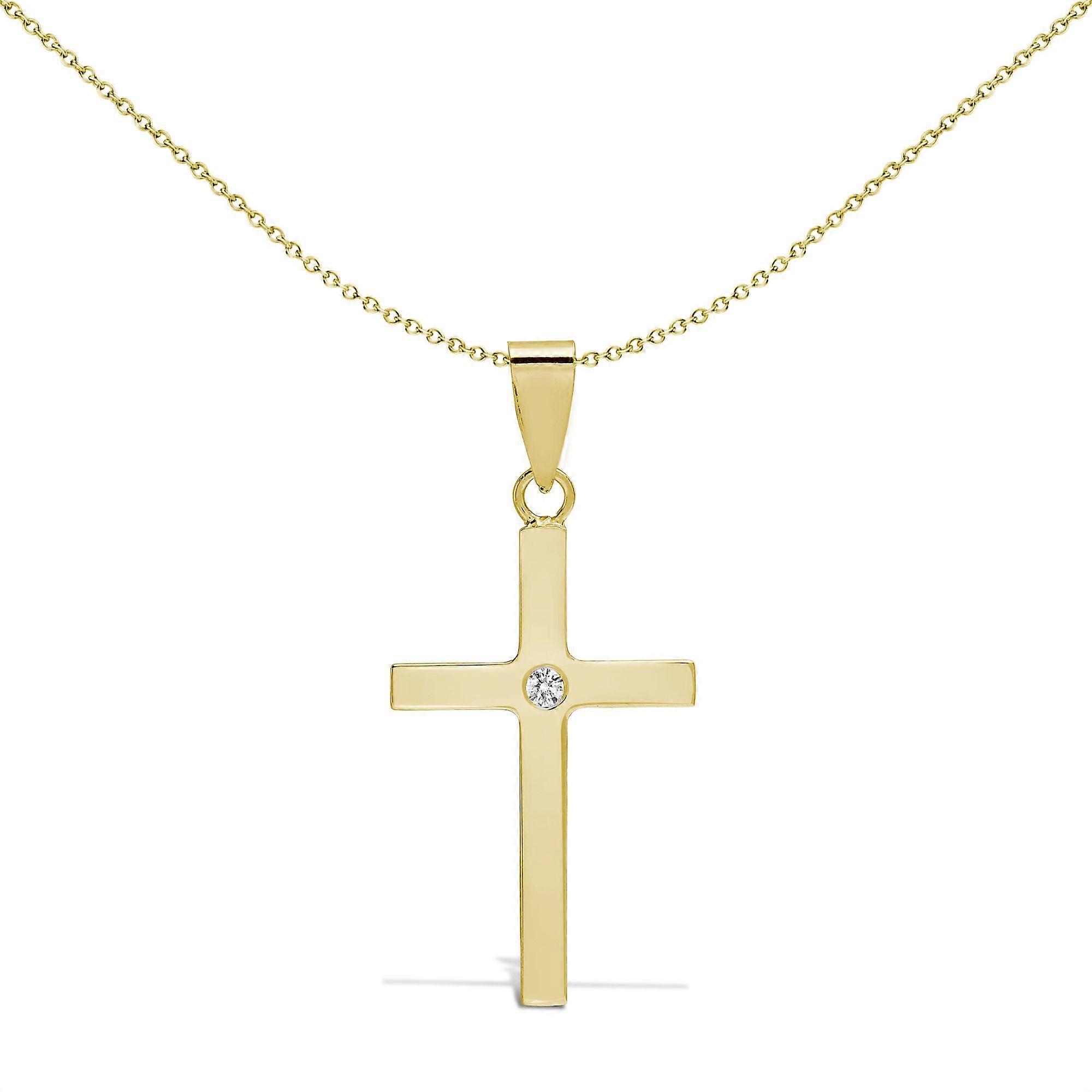 Jewelco London Solid 9ct Yellow Gold Invisible Set Round I SI2 0.03ct Diamond Minimalist Solitaire Cross Pendant