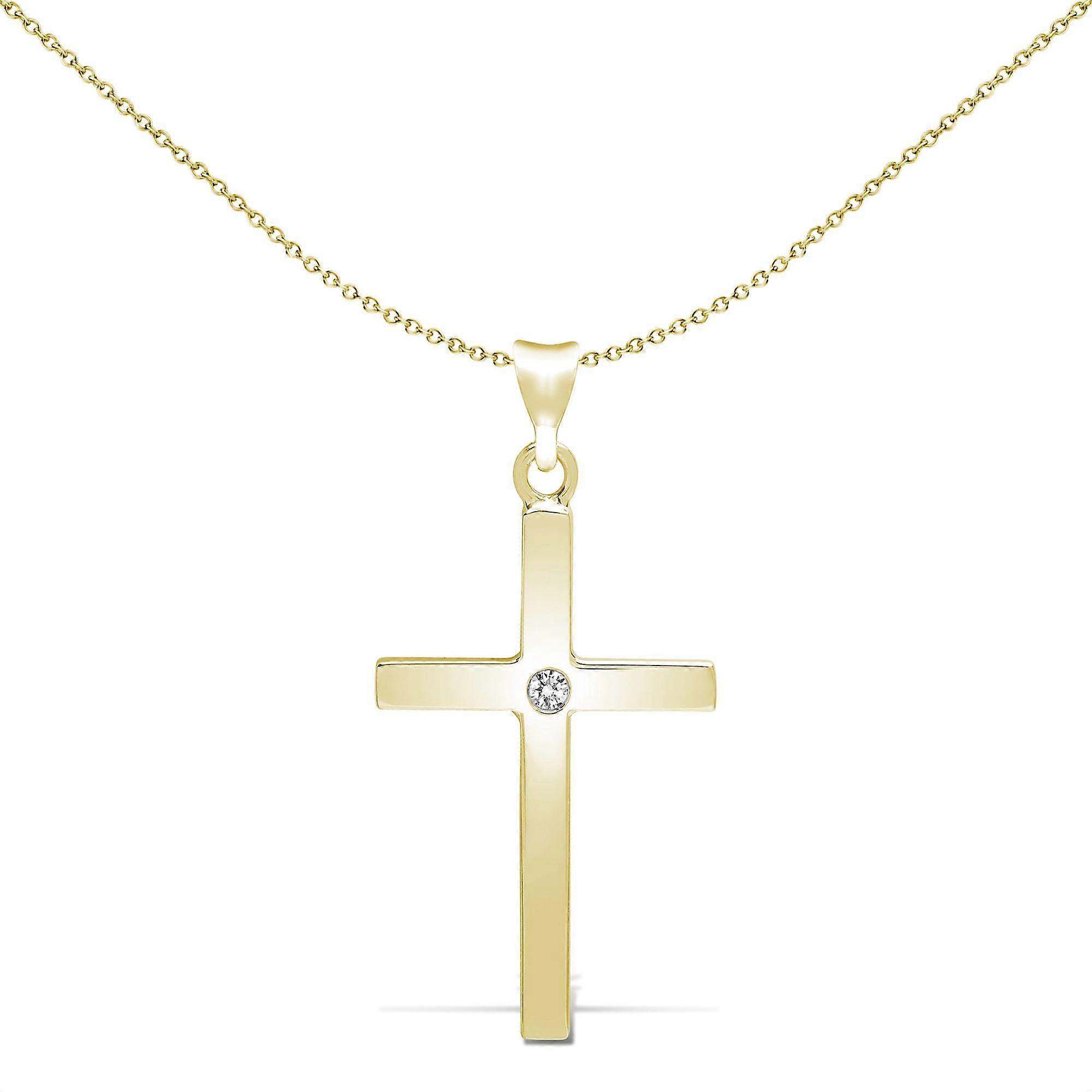 Jewelco London Solid 9ct Yellow Gold Invisible Set Round I SI2 0.05ct Diamond Minimalist Solitaire Cross Pendant