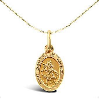 Jewelco London Solid 9ct Yellow Gold Matte Oval St Christopher Medallion Pendant