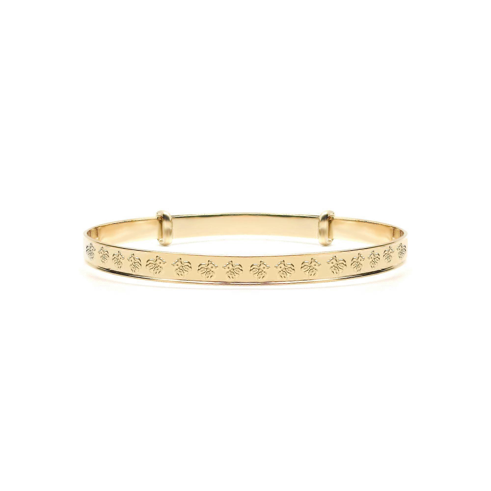 Jewelco London Solid 9ct Yellow Gold Nursery Teddy Bear Pattern 3mm Expanding Baby Bangle Bracelet
