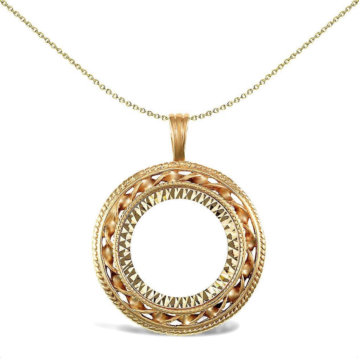 Jewelco London Solid 9ct Yellow Gold Rope Candy Twist Frame Half Sovereign Coin Mount Pendant