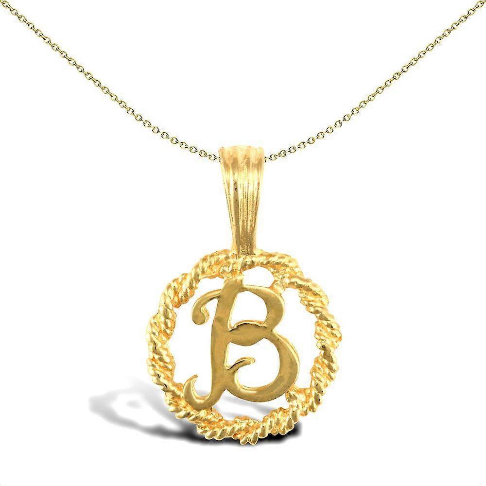 Jewelco London Solid 9ct Yellow Gold Rope Identity Initial Charm Pendant Letter B