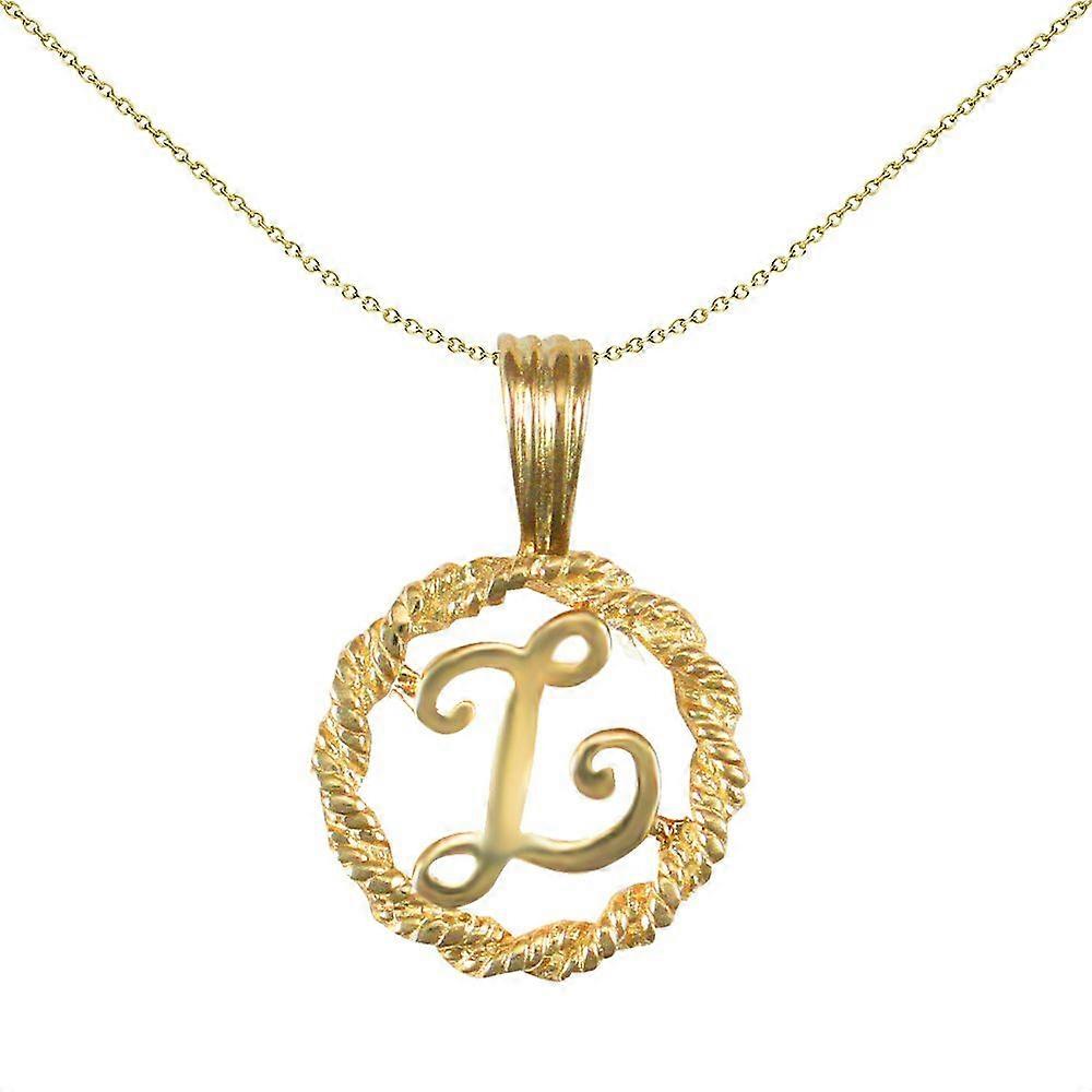 Jewelco London Solid 9ct Yellow Gold Rope Identity Initial Charm Pendant Letter L