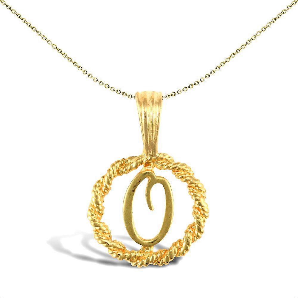 Jewelco London Solid 9ct Yellow Gold Rope Identity Initial Charm Pendant Letter O