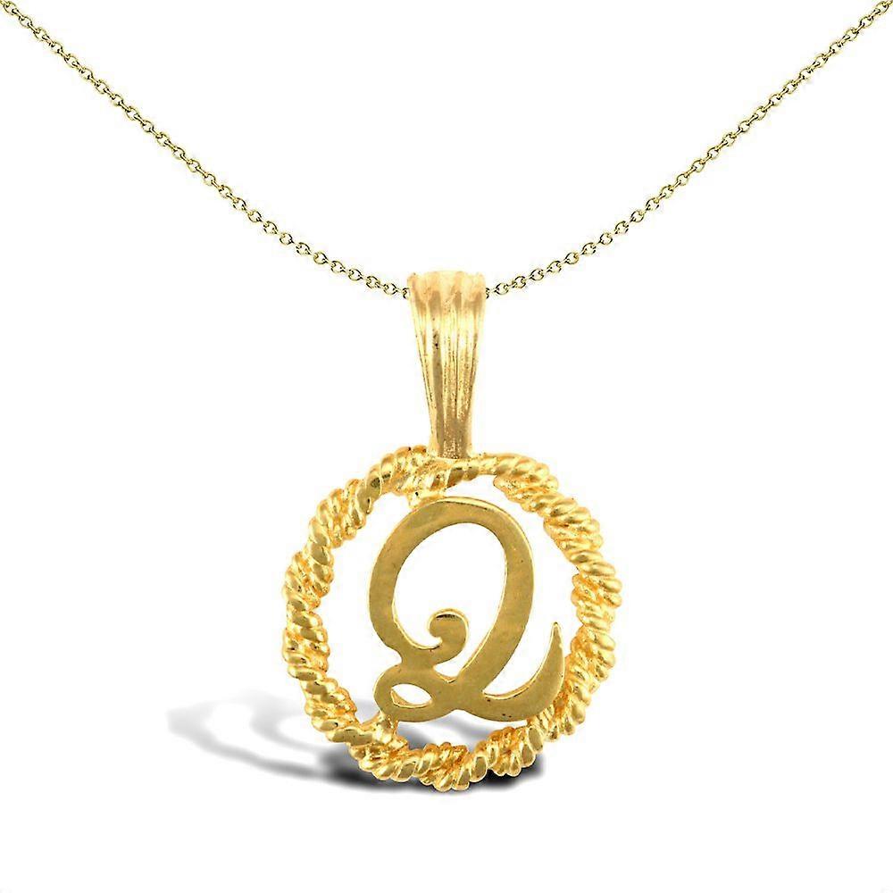Jewelco London Solid 9ct Yellow Gold Rope Identity Initial Charm Pendant Letter Q