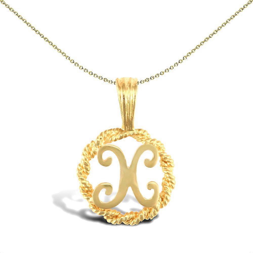 Jewelco London Solid 9ct Yellow Gold Rope Identity Initial Charm Pendant Letter X