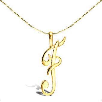 Jewelco London Solid 9ct Yellow Gold Script Identity Initial Pendant Letter F