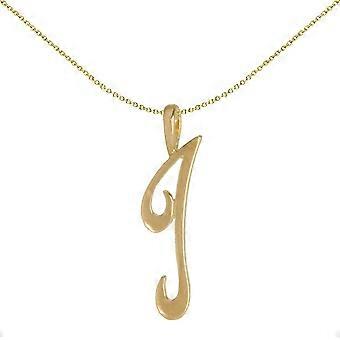 Jewelco London Solid 9ct Yellow Gold Script Identity Initial Pendant Letter I