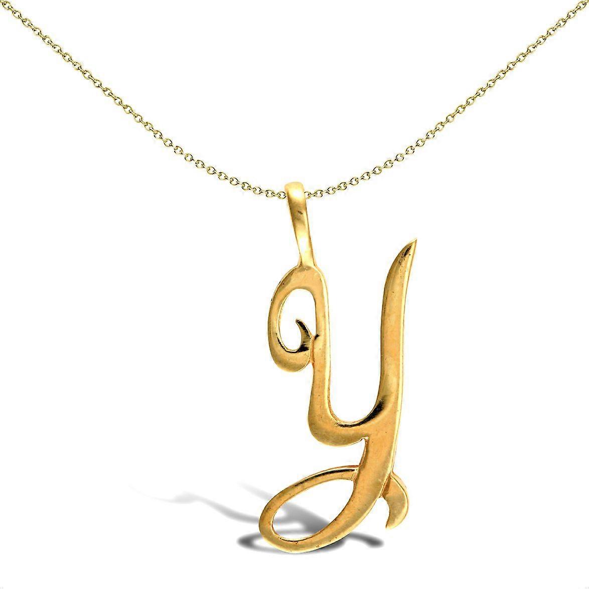 Jewelco London Solid 9ct Yellow Gold Script Identity Initial Pendant Letter Y