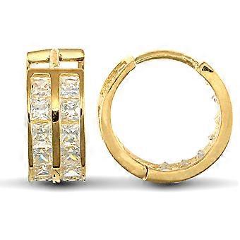 Jewelco London Solid 9ct Yellow Gold White Princess Cut Cubic Zirconia 2 Row Eternity 5mm Huggie Hoop Earrings 12mm