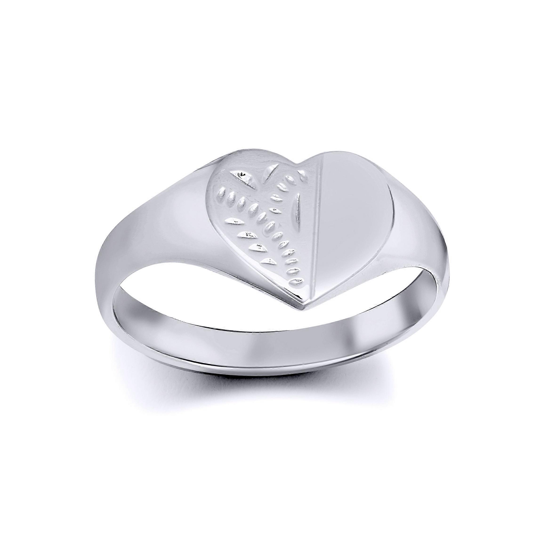 Jewelco London Solid Rhodium-plated 925 Sterling Silver Diamond Cut Love Heart Signet Ring