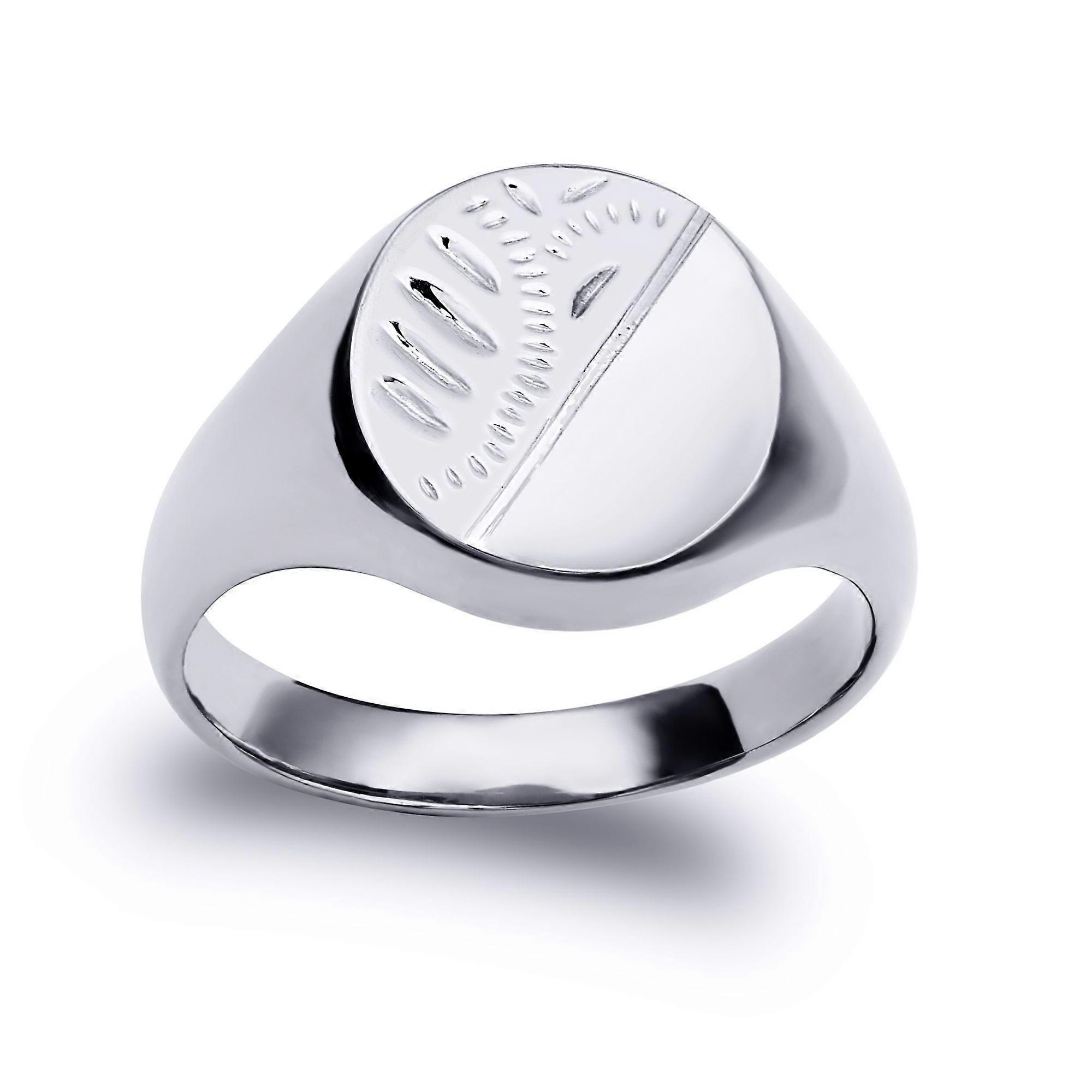 Jewelco London Solid Rhodium-plated 925 Sterling Silver Diamond Cut Round Oval Signet Ring