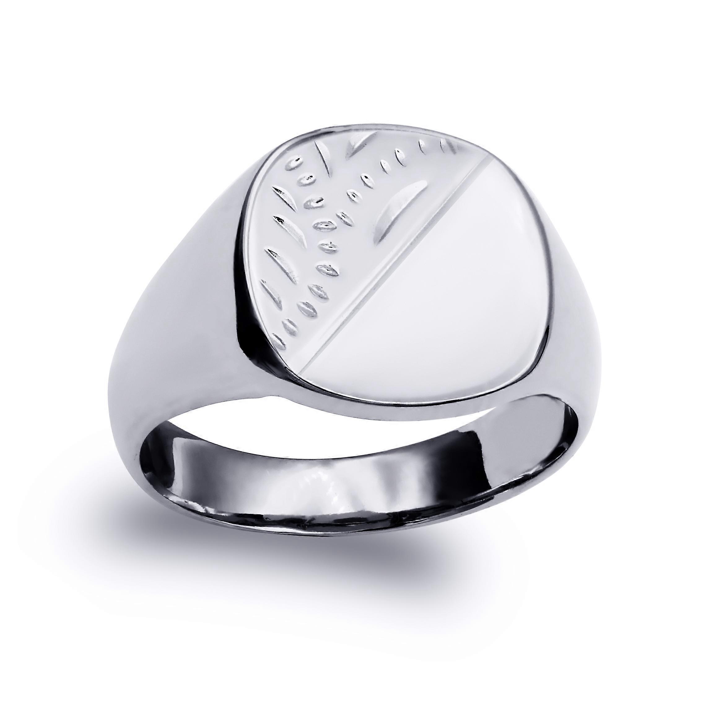 Jewelco London Solid Rhodium-plated 925 Sterling Silver Diamond Cut Square Cushion Signet Ring