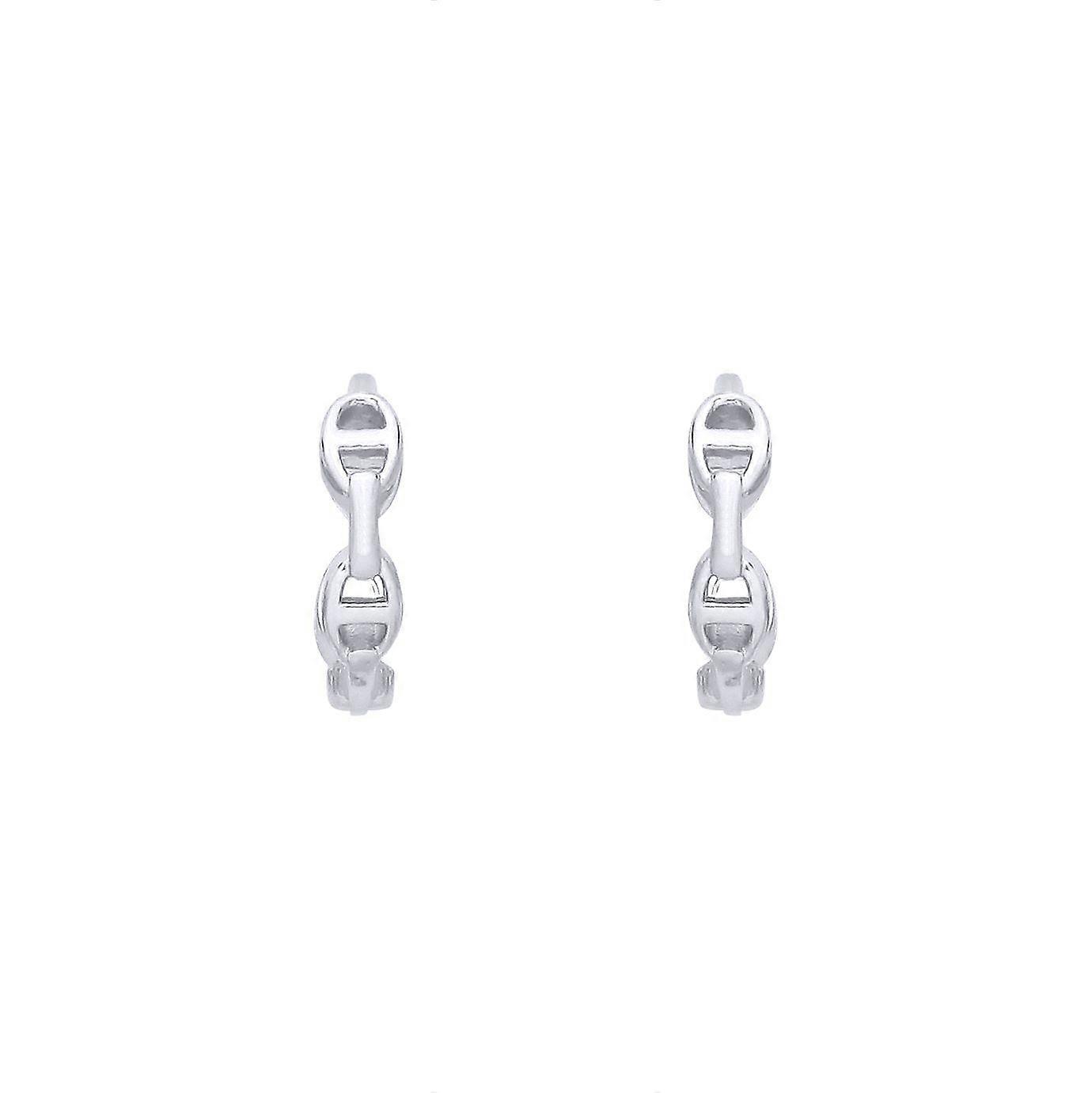 Jewelco London Sterling Silver Anchor Link Huggie Hoop Earrings