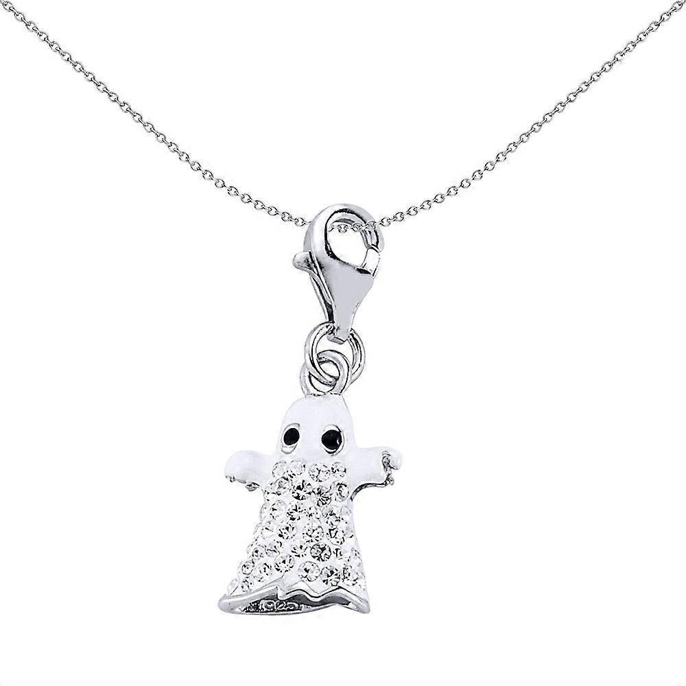 Jewelco London Sterling Silver Black White Enamel Crystal Boo Ghost Charm Pendant