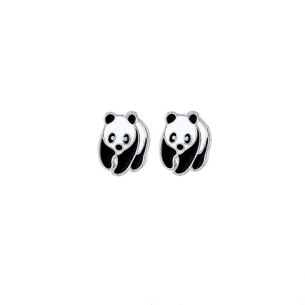 Jewelco London Sterling Silver Black White Enamel Panda Stud Earrings 11mm