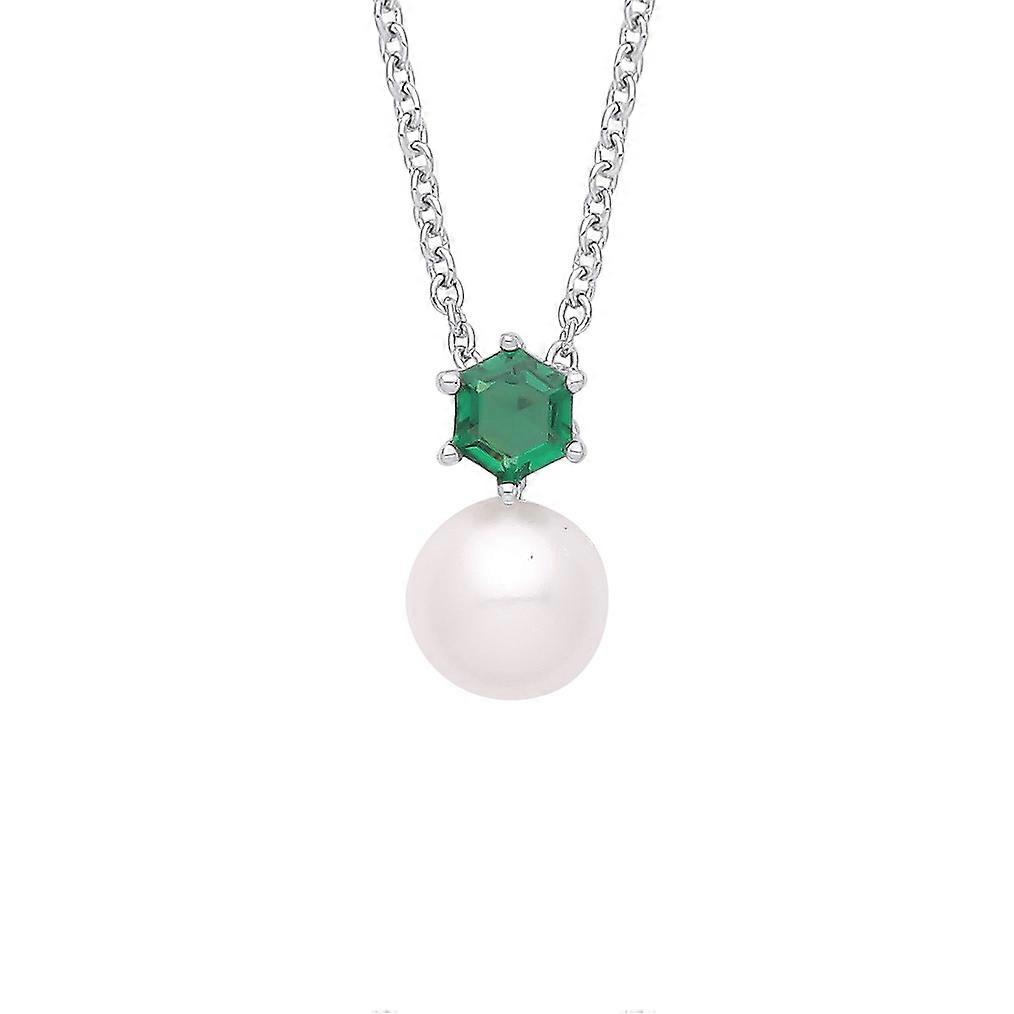 Jewelco London Sterling Silver Cream Hexagon Honeycomb Pearl CZ Headdress Lavalier Necklace 16 + 2 inch