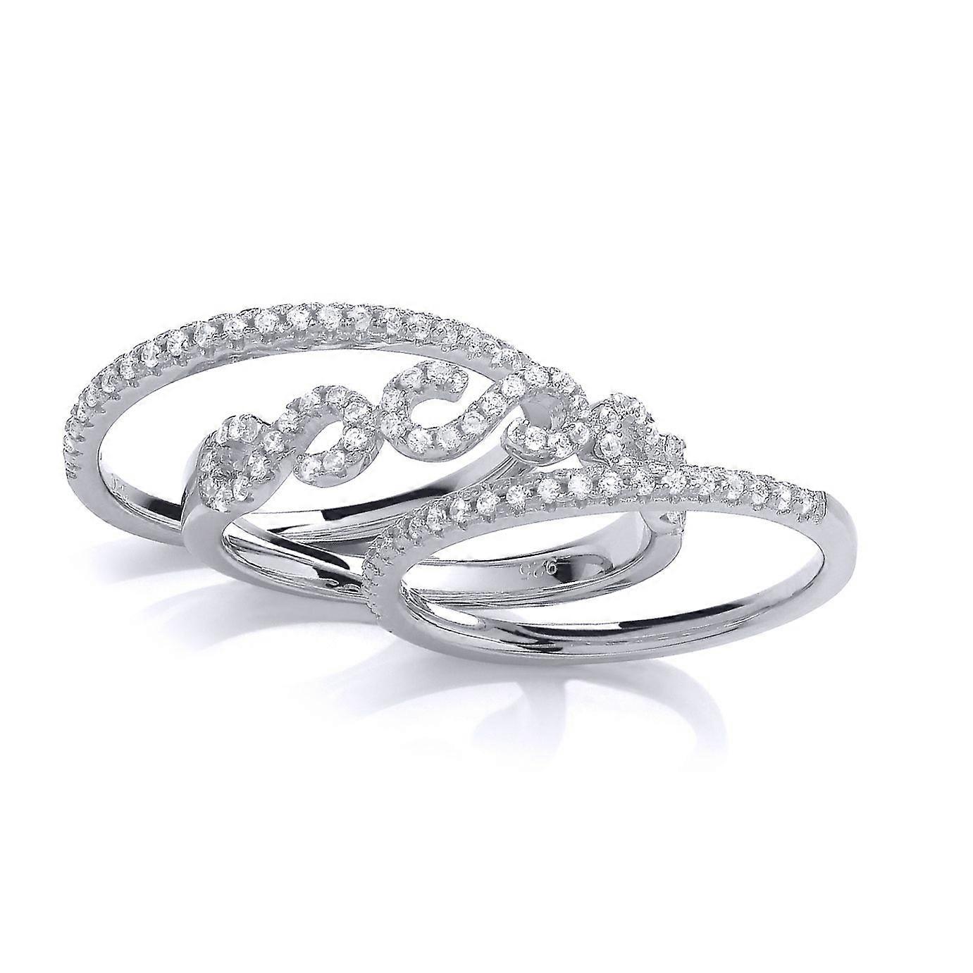 Jewelco London Sterling Silver Cubic Zirconia 3 Piece Pave Ring