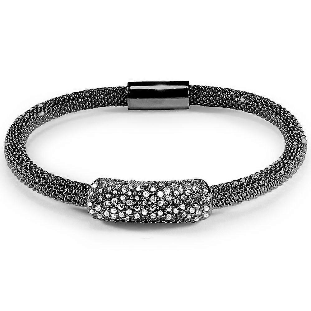 Jewelco London ladies Sterling Silver ruthenium Coated Diamond-cut popcorn style Diamond cut tubed design magnetic tubular mesh Bracelet with a cubic zirconia centre tube. Dress to impress with this dazzling 925 sterling silver Popcorn cubic zirconia set mesh bracelet, ruthenium plated for that luxury glamorous contemporary dark look. Width: 9mm Length: 190mm GEMSTONE: Cubic Zirconia, Round, Simulated SKU: ABB056