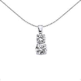 Jewelco London Sterling Silver Cubic Zirconia Duet Drop Toi et Moi Pendant Necklace 18 inch