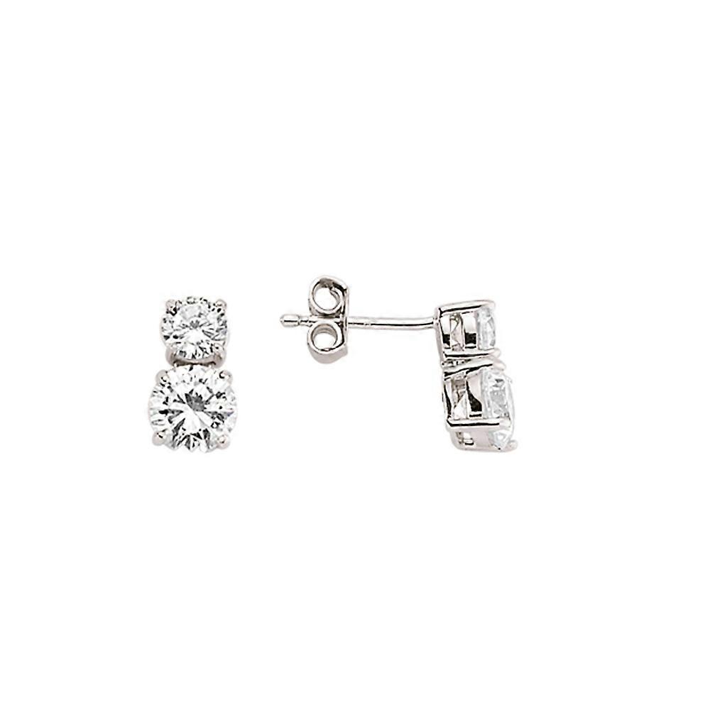 Jewelco London Sterling Silver Cubic Zirconia Duet Drop Toi et Moi Stud Earrings
