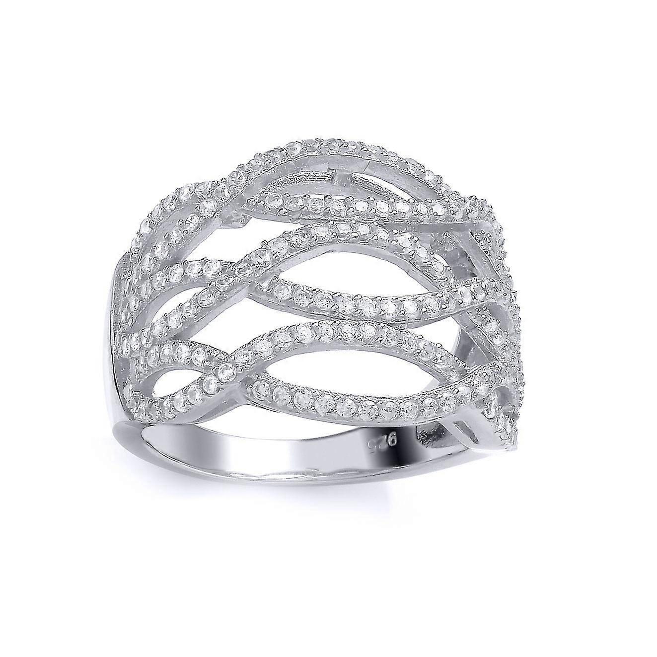Jewelco London Sterling Silver Cubic Zirconia Fancy Crossover Eternity Ring