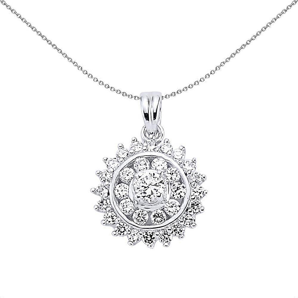Jewelco London Sterling Silver Cubic Zirconia Halo Cluster Charm Necklace 18 inch