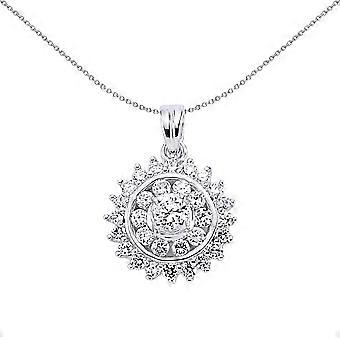 Jewelco London Sterling Silver Cubic Zirconia Halo Cluster Charm Necklace 18 inch