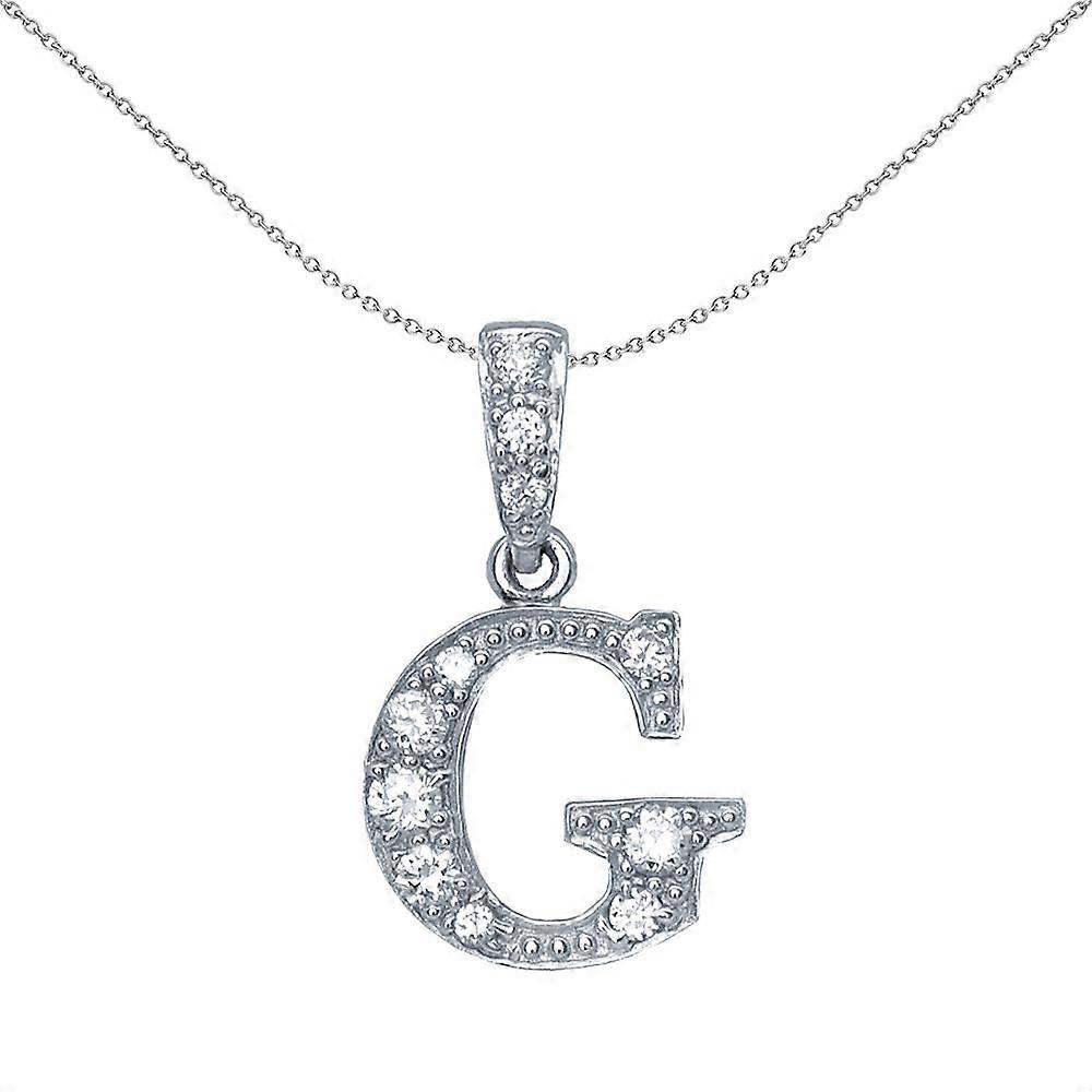 Jewelco London Sterling Silver Cubic Zirconia Letter G Initial Pendant Necklace 18 inch